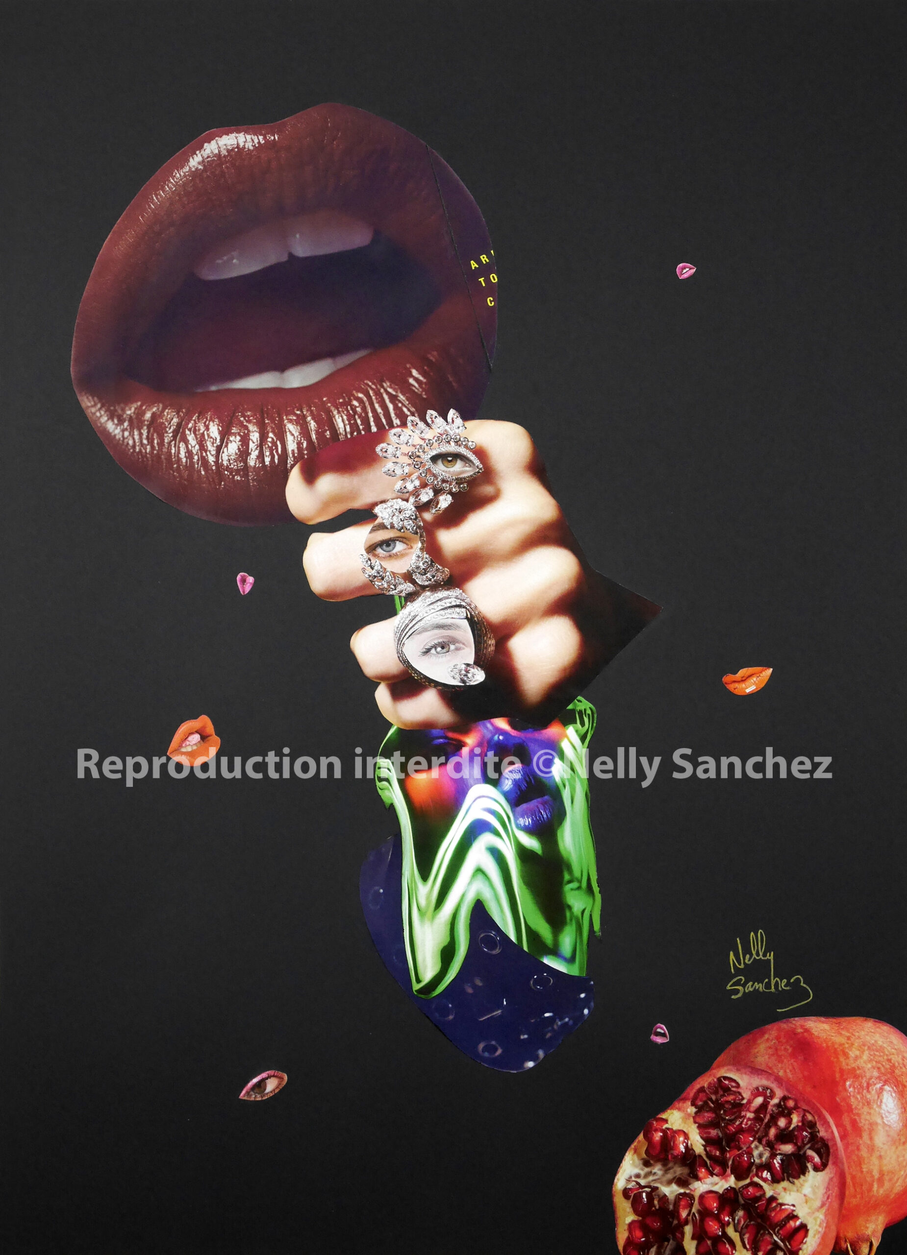et du dialogue des photos découpées dans les magazines qu’elle collecte.